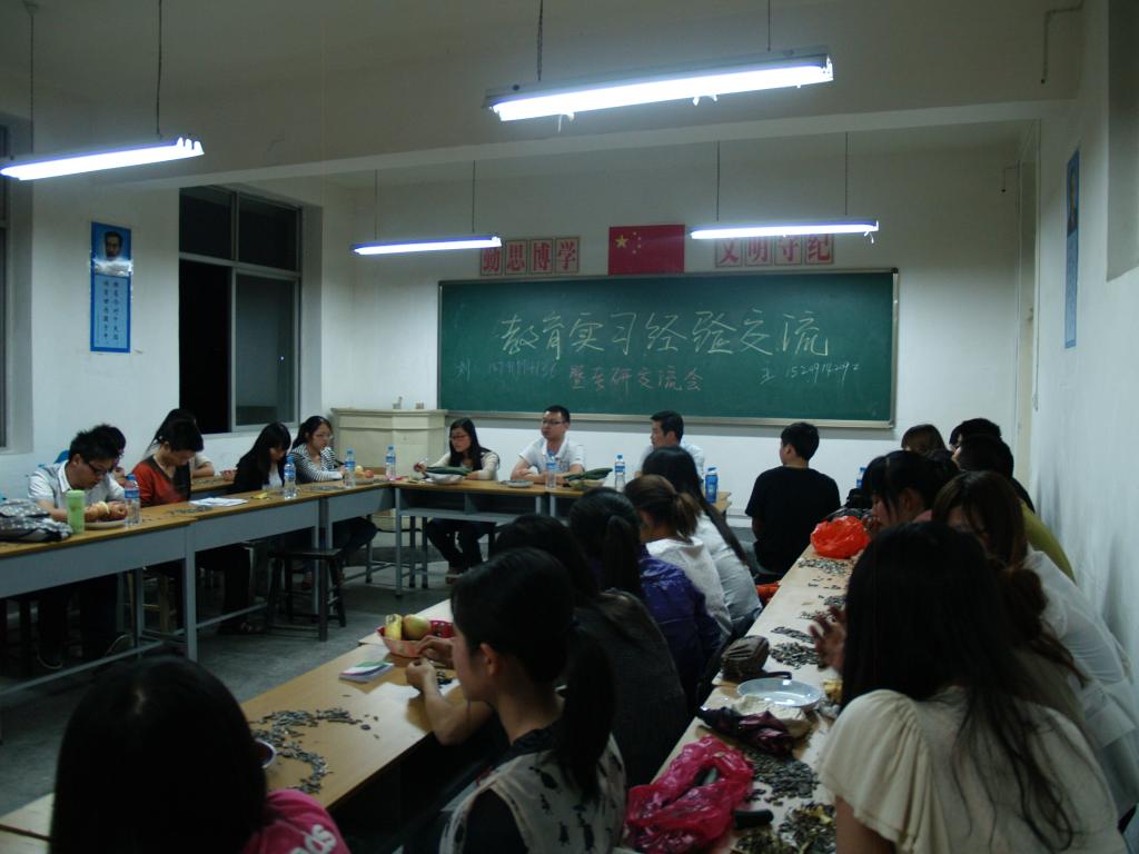 首先,09化本班连宾宾、任成新等周金同学就本科毕业实习问题,发表了各自的看法,他们结合自己到各个学校的实习经验,从生活、学习、教学各方面一一列举他们实习时遇到的问题,以及该专业对今后发展的利弊权衡,他们的全面而详细的发言让我们在场的所有人明白现在就要开始为自己的前途不断增加知识储备,增加就业砝码。随后,王晓祥等同学结合自己的考研经验,给我们班考研同学进行答疑,为考研的同学加油打气。