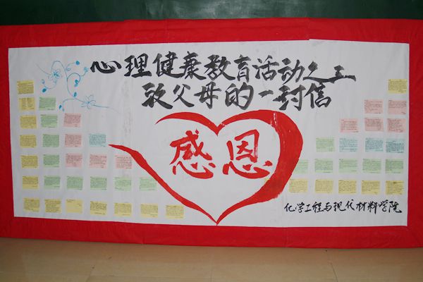在大学生心理健康教育活动周来临之际我,我院举办了“心向阳光,青春绽放” 致父母的微家书活动。14级应用化学三班闫涛写到“爸,家里还好吗?工作顺利吗?多注意身体少加班,想听听爸爸的唠叨,想吃妈妈做的饭菜,我在学校挺好,希望爸妈不要挂念照顾好身体。”这虽然只是一行行简单的话语,但其中却饱含对父母的爱,虽然我们无法付出实际行动,但我们心存感恩,用“微家书”表达对父母伟大而无私的爱。