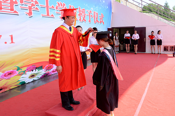 刘建林寄语毕业生,希望同学们以“胸怀、视野、责任、卓越”铸就自己人生奋斗的致导线。树立远大理想,以“天下兴亡匹夫有责”为志向,勇做民族伟大复兴之脊梁;志存高远,在追求社会文明与进步中实现自我的价值;希望同学们在“坚信、坚定、坚强、坚持”中成长成才,拥有政治自信、道路自信、文化自信、成功的自信!勇敢些,坚强些,在坚持中锻炼,在坚持中成长,永不言败,永不服输;希望同学们坚守“感恩、感念、务实、清廉”的做人底线。做事情时做实做好,守住做好人做好事、做实在人做实在事的坚实信念在学士学位授予仪式上,毕业生们依次走上主席台,校长刘建林为获得学士学位的毕业生正冠拨苏、颁发学位证书,并同他们一一合影留念。