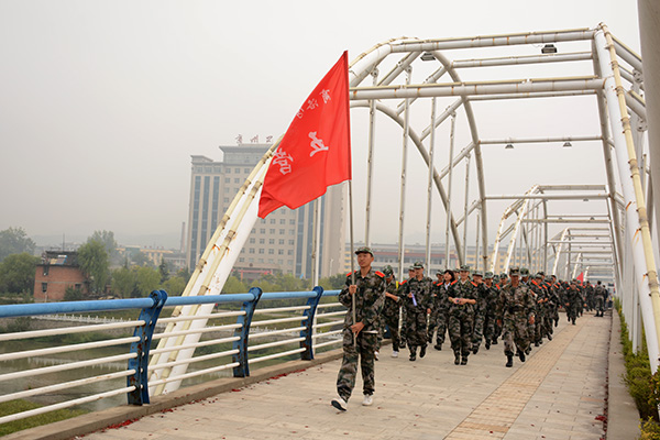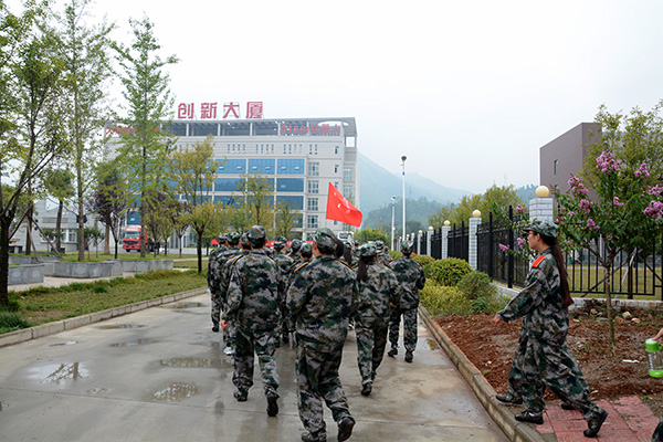 上午8点,我院新生身着迷彩服,从学校体育场出发,沿北新街、江滨大道、商鞅大道步行抵达丹江校区后继续前往陕西省尾矿重点实验室参观并返回,全程10公里。