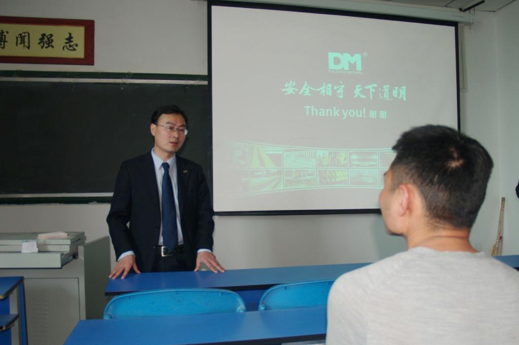 首先是招聘方代表依次介绍本公司的发展规模、方向、前景。道明光学股份有限公司是专业从事研究、开发、生产和销售各种反光材料及反光制品的国家级高新技术企业,建有省级高新技术研究开发中心及省级企业技术中心,拥有三十多项自主知识产权。公司以“成长为具有不断创新精神,与世界同行和时代一同进步的优秀企业”为目标,秉持“求实创新,追求卓越”的企业精神,通过技术进步和管理创新,强化企业品牌形象,致力于打造世界卓越品牌-DM。公司主要产品是反光布、反光革、热敏反光贴膜、转移印花膜、彩色热贴膜、熔断膜、反光丝线、反光制品、反光服装等新材料产品。