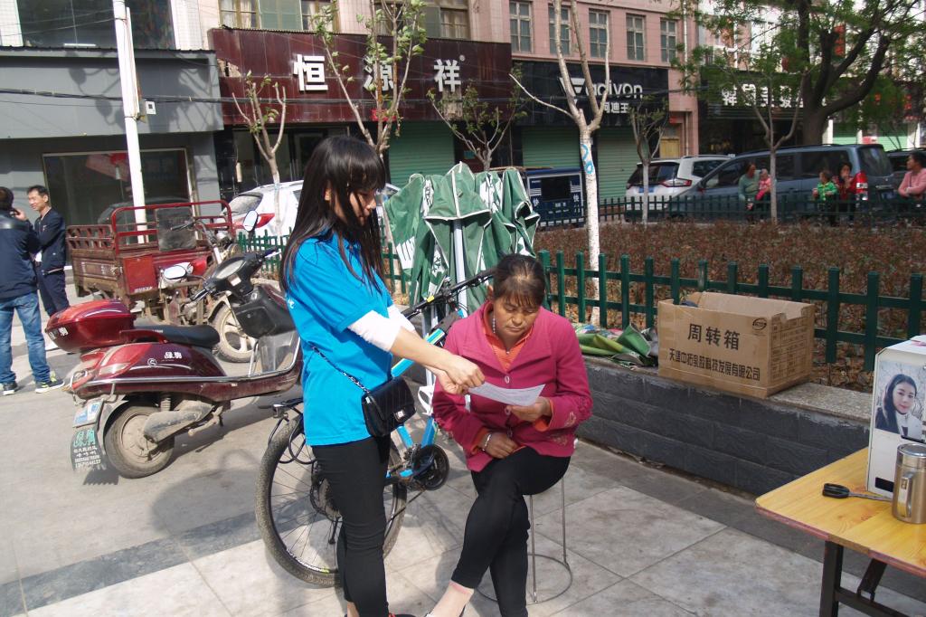 活动以沿街发放科技知识宣传单的形式进行,向路人宣传各种与生活相关的科技知识。希望拿到宣传单的人们从食品、环境、健康等方面增加生活小常识。