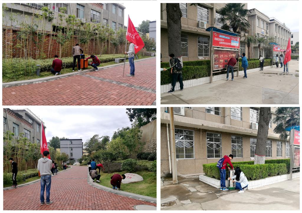 在“明亮你的视野”校园义务劳动活动中,团总支带领学生会80余人对4、5号教学楼前景观平台、团委楼下流水花园以及1号教学楼周围的广告栏、垃圾箱以及地面垃圾进行了清洁。