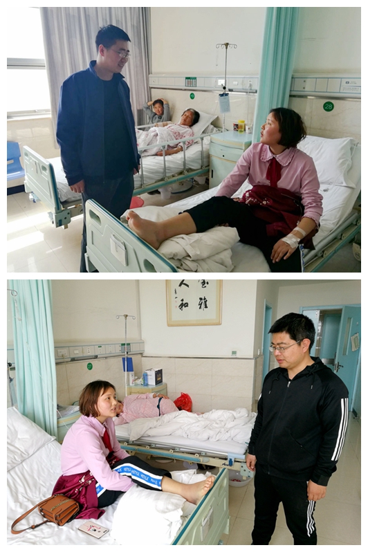 李海英,因在操场跑步时与他人相撞摔倒,辅导员、班主任及时将该生送往医院治疗,经诊断为轻微骨折。辅导员、班主任安排该班学生干部轮流照顾,并积极联系商洛市社保局,了解大学生医疗保险的相关报销政策,直至该生家长到来。该生家长对学院的关怀表示感谢,对辅导员、班主任、学生干部的贴心照顾表示感谢。