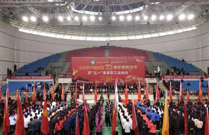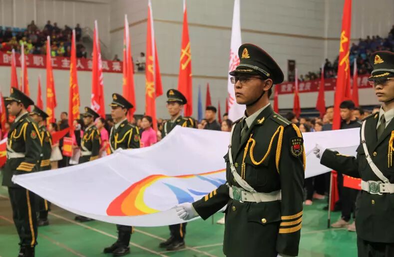 4月22日上午9时,喜迎新中国成立70周年暨商洛市庆“五一”首届职工运动会在市体育馆开幕,我院国旗护卫队荣幸受商洛市委邀请出任本次出旗任务。到会的领导有市委书记陈俊、市人大常委会主任张岗岭、市委副书记、市长郑光照、市政协主席高健等人。