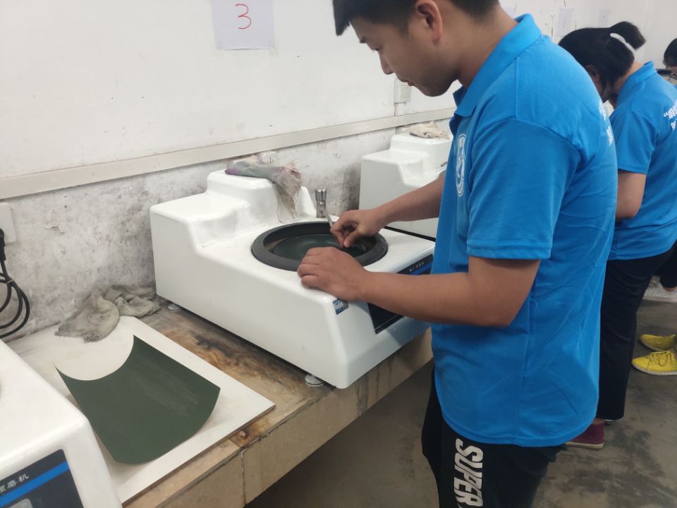 比赛前,选手需要先签到登记,然后领取6张砂纸、圆形毛巾和样品进行候场,以每组7个人进行比赛。在比赛过程中,选手们聚精会神,有条不紊。打磨,抛光,腐蚀,观察这些操作过程的认真可以看出大家对此次比赛的重视程度,并且希望大家在本次比赛中都取得自己满意的成绩。