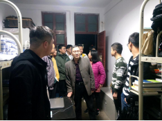 凛冬将至,天气逐渐寒冷,昼夜温差较大。为了解我院学生状况,我院党总支书记李军富,大三辅导员陈玉萍,大二辅导员郝东,大一辅导员房禹以及学生会主席团于11月15日晚7点一同探访学生宿舍,对学生进行问候和叮嘱。