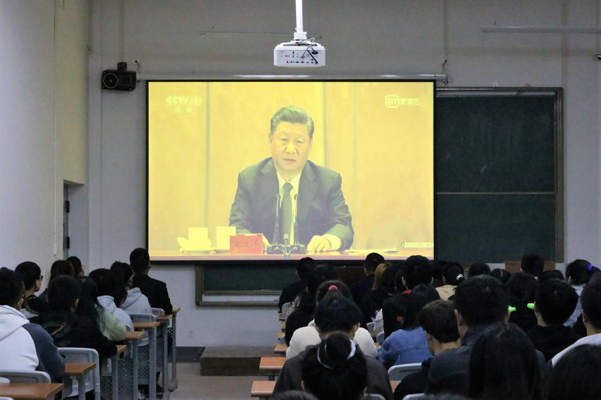 团总支书记房禹和全体学生干部认真观看了会议内容,此次会议集中回顾了中国人民志愿军在抗美援朝战争中的光辉历程,宣传了在战争中所涌现出的英雄人物和英勇事迹,彰显了中国人民团结一心、不畏强敌的革命精神,展现了党带领下的全国各族人民万众一心、众志成城的爱国情怀。习近平总书记在讲话中深切回顾了70年前波澜壮阔的历史,展望了中华民族伟大复兴的光明前景,号召全体人民更加紧密地团结在党中央周围,弘扬伟大的抗美援朝精神,向着全面建设社会主义现代化国家新征程,向着实现中华民族伟大复兴的中国梦,继续奋勇前进。