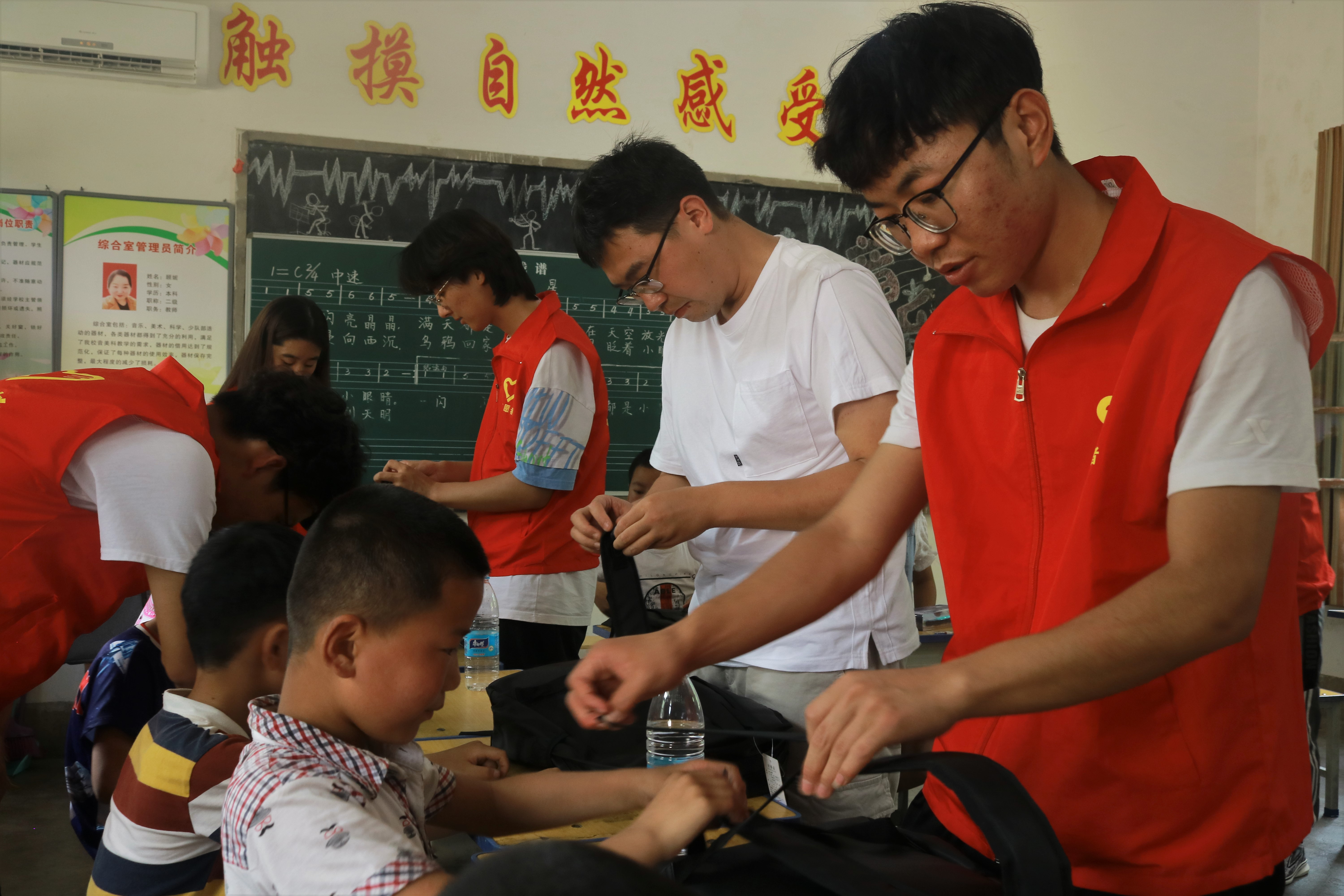 活动最后,实践团向留守儿童们发放了书包、作业本、文具等学习用品以及乒乓球拍、跳绳等体育活动用品。