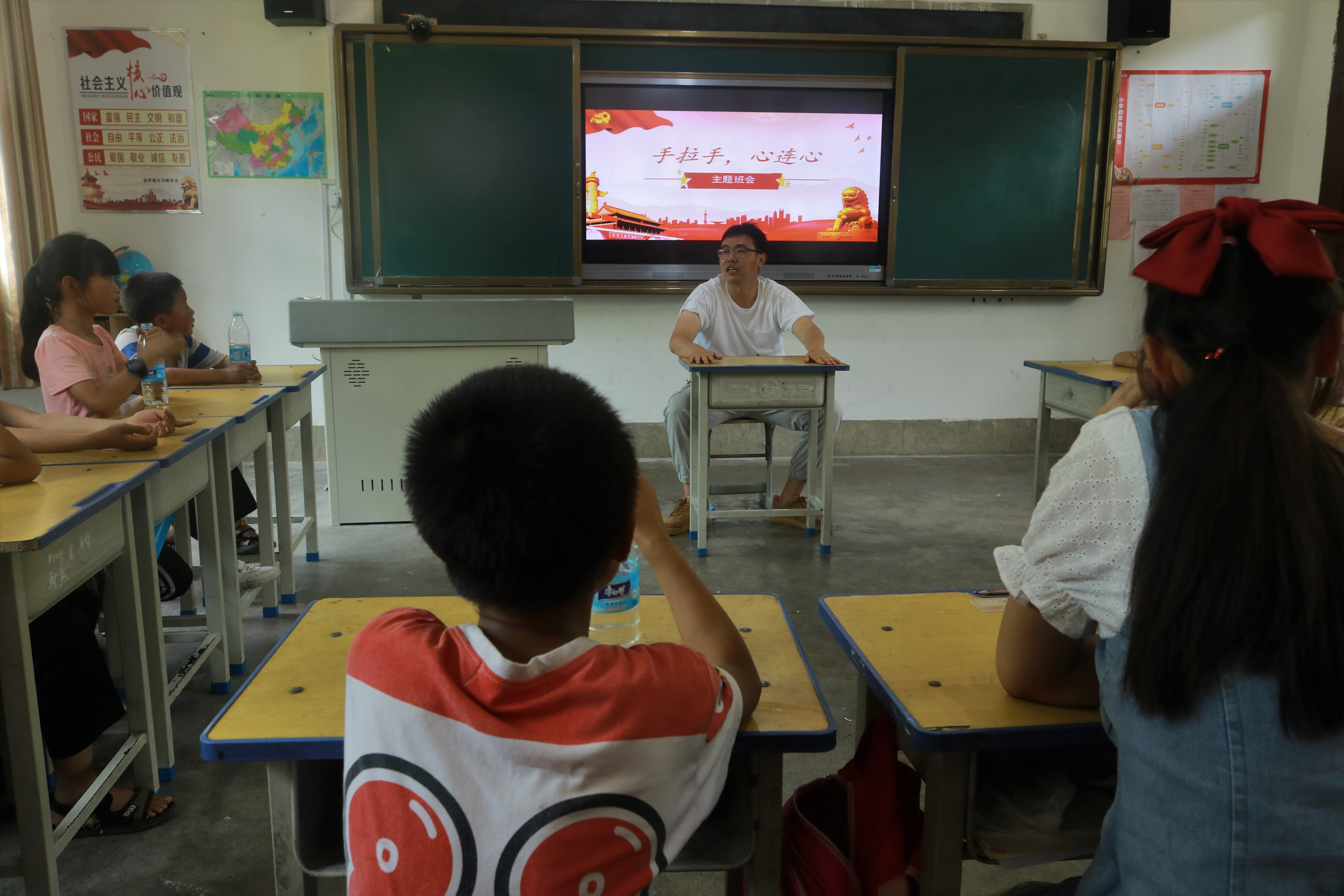 7月28日下午,实践活动接近尾声。团队指导教师房禹召开了“手拉手,心连心”主题班会,同大学生和留守儿童们一起畅谈人生理想,勉励他们要怀揣理想,珍惜时间,并为理想坚持奋斗。志愿者王瑞欢结合自身成长经历对留守儿童们提出真诚祝愿,希望他们能够健康成长,成为对家庭和国家有用的人。