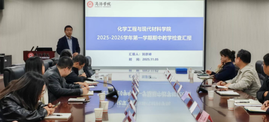 为进一步提升教学质量,扎实推进期中教学检查工作,11月5日,我院与经济管理学院2025 年秋季期中教学检查院际交流研讨会在丹江校区4号楼 218 会议室成功举办。教务处副处长王洋、督导与评估中心薛雨莅临指导,经济管理学院与化材学院各教学组织教师代表参会,化材学院教学院长刘彦峰主持会议。