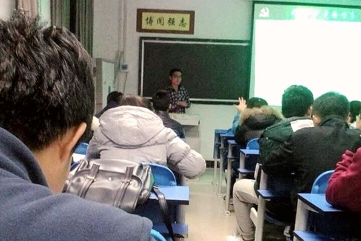 晚上7:20左右,教室里已经黑压压一片,坐满了2015级新生班干部。从他们身上可以看出一种积极向上精神风貌,同时可以看出新生对加入共产党的渴望和对党的深切拥护。