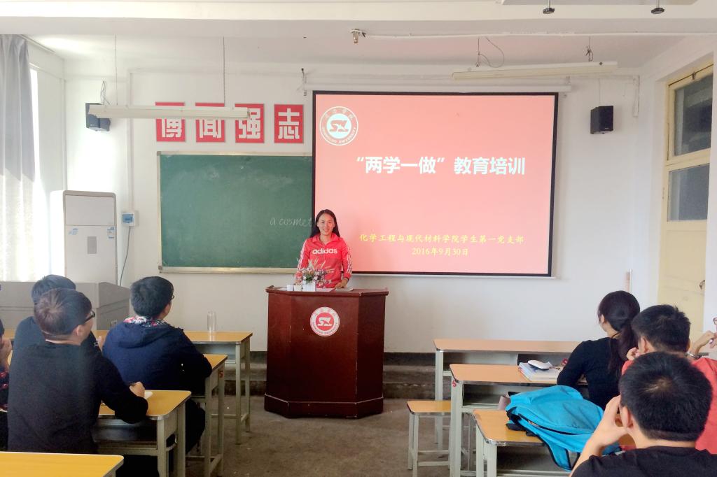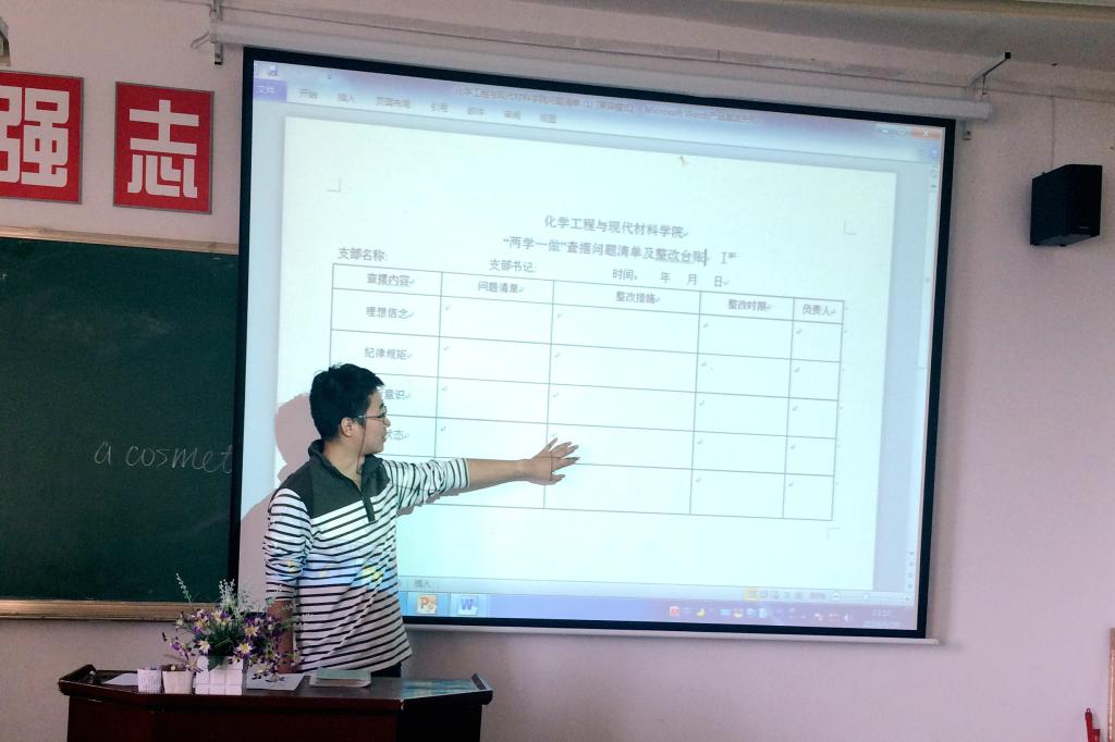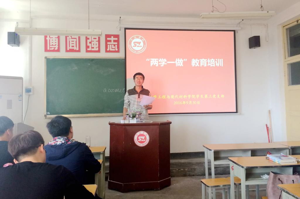 为做到深学细研、掌握精髓,真正把全体党员的政治思想素质提高到新的水平,做到学以致用、以学促做。根据学校“两学一做”学习教育领导小组办公室下发的《关于“两学一做”学习教育第三阶段工作安排的通知》,在前期各党支部党员自学、自查、自改的基础上,学生第一、第二、第三党支部于2016年9月30日14::00在5号教学楼307教室召开“两学一做”学习教育促进会。