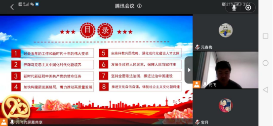 为深入学习党的二十大报告,凝聚奋进新时代的精神力量,11月30日下午3点化材学院教工第二党支部通过线上腾讯会议方式开展专题党课活动,围绕学习党的二十大报告讲授专题党课。活动由元飞同志主持并授课,支部全体党员参加。
