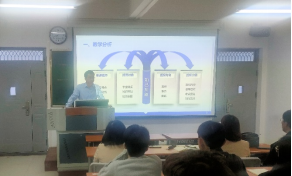 王书民教授以“如何上好教学技能大赛课”为主题,分别从“选题、设计、备课、素材、课件”五个方面为同学们做了详细讲述。就选题而言,内容要熟悉,导课要风趣有新意,知识传递要专业。设计教学时要围绕知识与技能、过程与方法、情感态度与价值观设计三维一体教学目标。备课时要考虑环节完备,搜集素材时需谨记把握时代脉搏,处处留心工作学习中的文本资源、数据图标、音视频等。最后,向同学们展示了课件制作过程的“十大原则”,以期实现“齐、整、简、适”的目标。