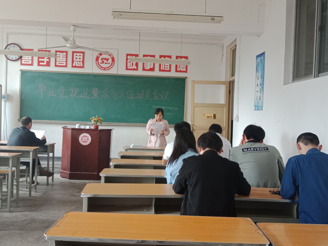 我院于5月8日15:00点在5-309教室召开2018届毕业生就业指导及应征入伍动员大会,院党总支书记李军富教授,学工办主任陈卫香老师,毕业班辅导员高霞老师以及部分毕业生参加了本次大会,会议由高霞老师主持。