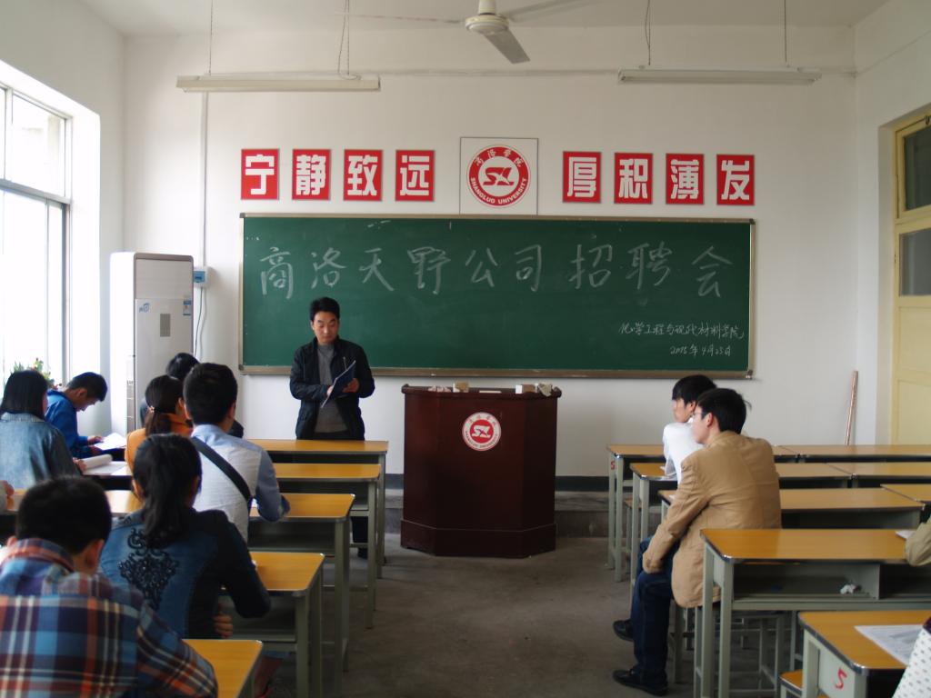 2015年4月23日,商洛天野高新材料有限公司人事部张主任来到我院举行专场人才招聘会,我院应用化学、金属材料工程、化学专业的近20名毕业生参加了应聘。